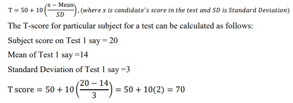 Norms and standards as laid down from time to time shall be applied uniformly to all candidates for adjudging their suitability. The basic parameters required to calculate T-score are Mean and Standard Deviation as derived from data of all candidates appeared in the test. Normally for most of the candidates, Tscore falls between T-score 80 to T-score 20, however formula does not rule out possibility of T-score beyond this range also, though number of such candidates may be very few .