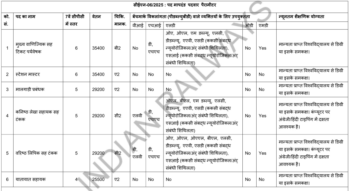 (अधिसूचना) आरआरबी गैर तकनीकी लोकप्रिय श्रेणियाँ (एनटीपीसी) RRB NTPC HINDI CEN No. 06/2025