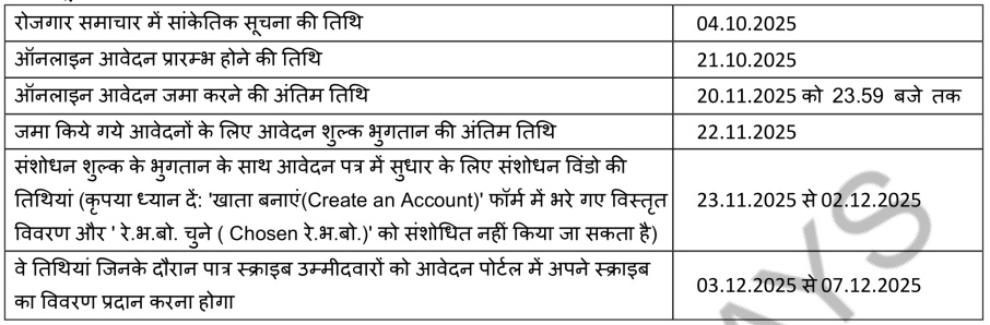 रिक्त सारणी में दिए गए सभी निर्धारित पद (पदों) के लिए न्यूनतम तथा अधिकतम आयु का आकलन 01.01.2026 के तिथि के अनुसार किया जाएगा